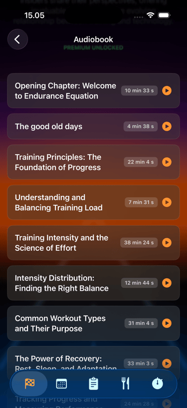 The Endurance Equation Audiobook brings elite-level knowledge directly into your daily training routine. Designed for athletes who want more than just workouts, it combines science, technology, and real-world performance insights into a guided listening experience—so you can learn while you train, recover, or prepare for race day.