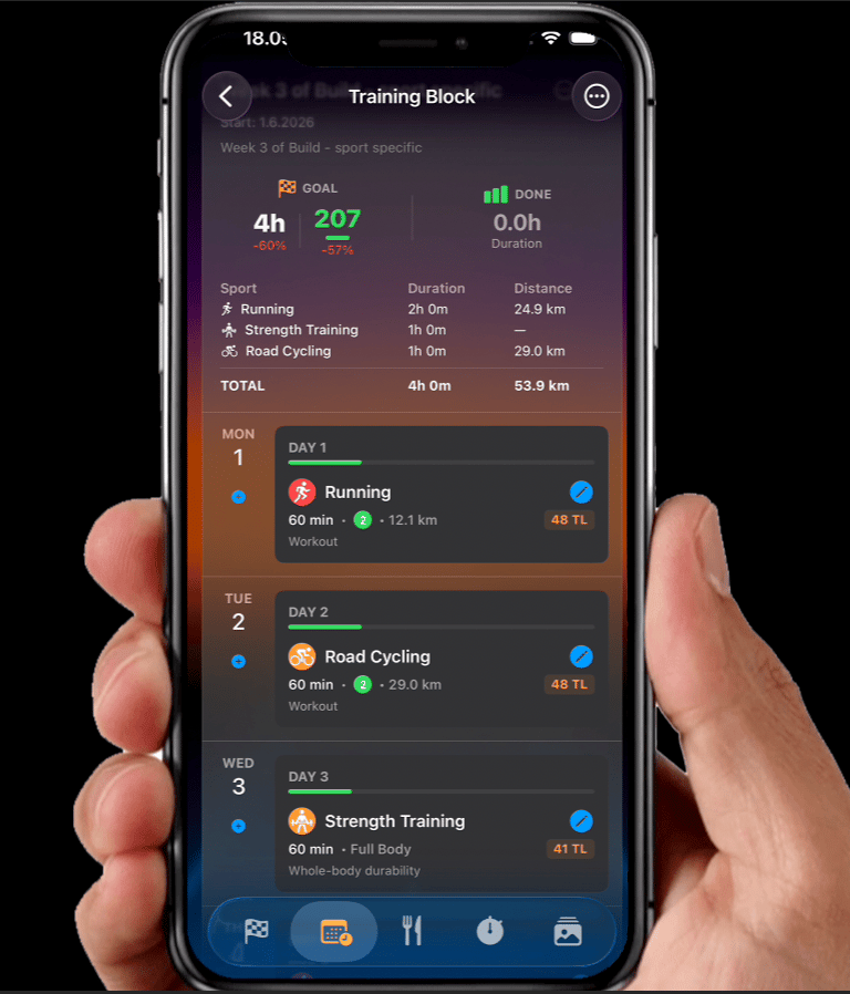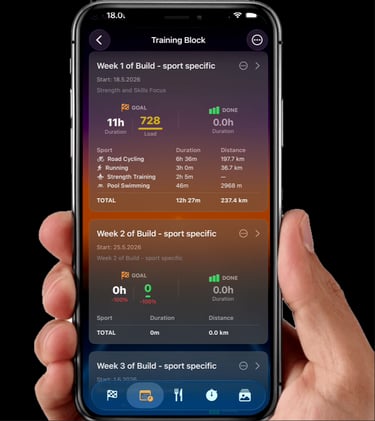 Manual Training Planner gives you full control over your race preparation. Designed for athletes and coaches who want to structure their own season, this feature allows you to build training blocks, define weekly progression, and plan every workout with precision. From base phase to peak and taper, you decide how your preparation unfolds